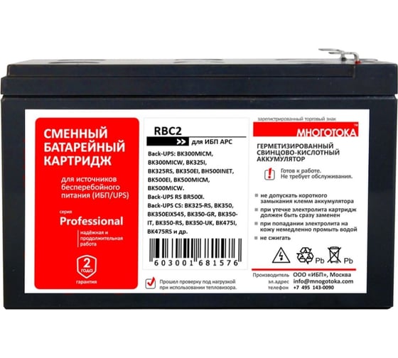 Сменный батарейный картридж для ИБП МНОГОТОКА - APC: 12 В, 7,2 Ач, 2,5 кг серия Practic RBC2 Practic
