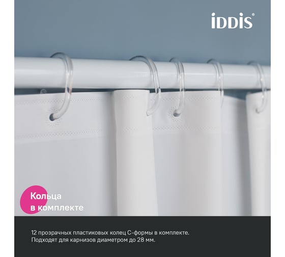 Штора для ванной IDDIS 200x180 см, полиэстер BX04P18i11