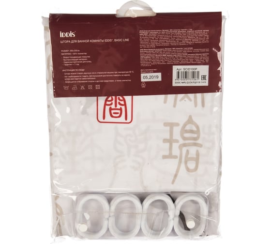 Штора для ванной IDDIS 200x180 см, Полиэстер, бежевый BS02P18i11