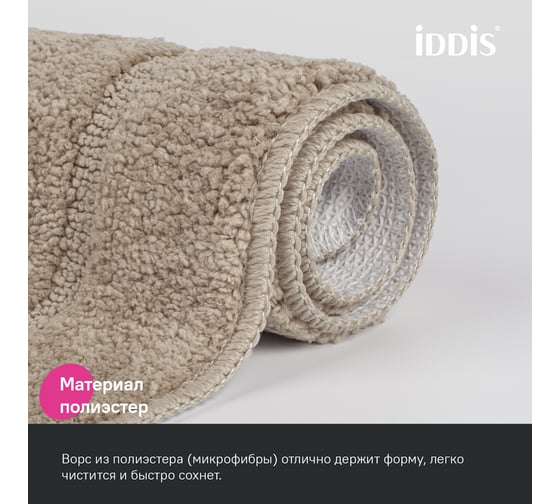 Коврик для ванной комнаты IDDIS 70x120, микрофибра, бежевый, BSQL01Mi12IT