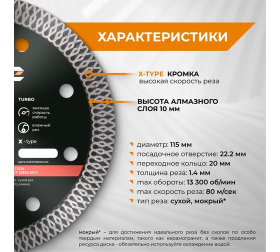 Диск алмазный Турбо (230x2x22.2 мм) Gigant G-1000