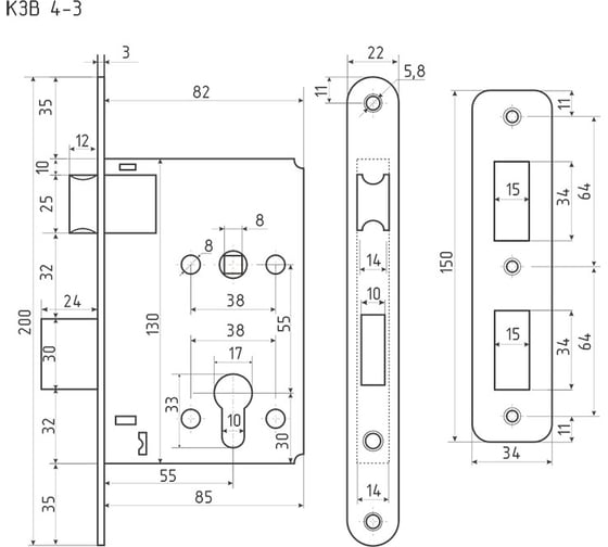 Врезной замок Эльбор КРЕМЕНЬ 1.03.03