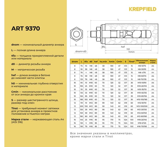 Анкер клиновой оцинкованный SORMAT S-KAK max 8.8 S-KAK max 8.8 M10/35/115, 25 шт. 9630423136