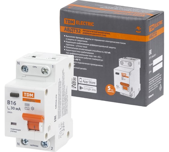 Дифференциальный автомат TDM ELECTRIC ад2p 2р с16 10ма 6ка тип ас SQ0204-0605