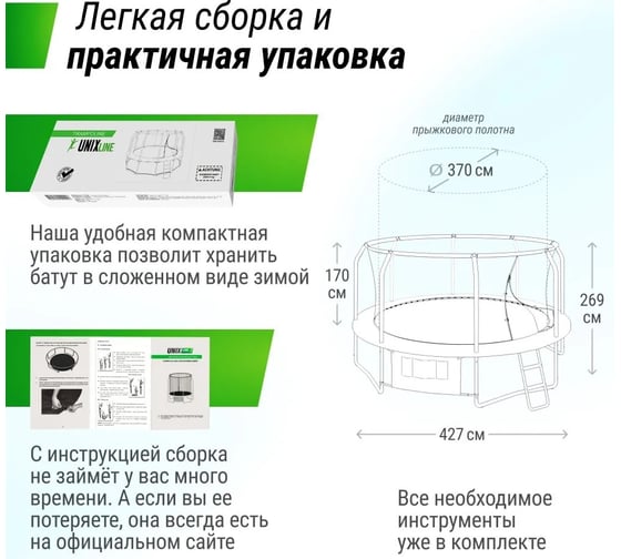 Батут UNIXline unix line supreme basic 14 ft green TRUSUB14G