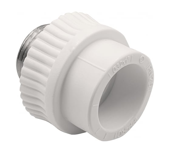 Штуцер с накидной гайкой PRO AQUA PP-R белый d-25 мм 1" PA70014b