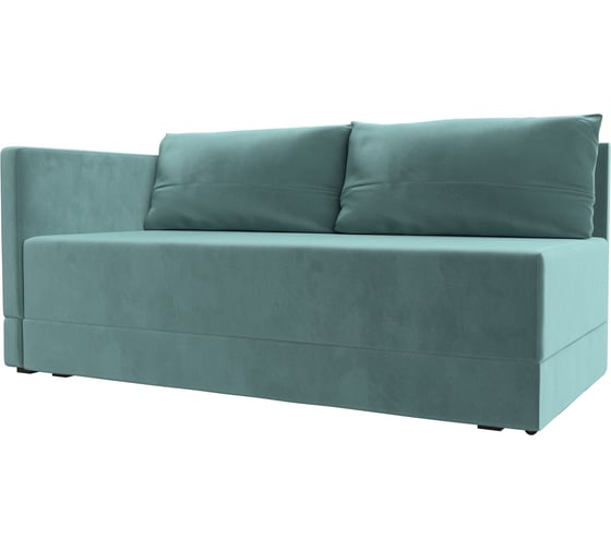 Прямой диван Лига диванов Прага модерн подлокотник слева полностью Велюр бирюзовый 116788L