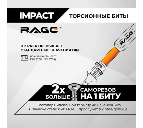 Торсионные биты RAGE IMPACT PH2 x 50 мм 10 шт 554281