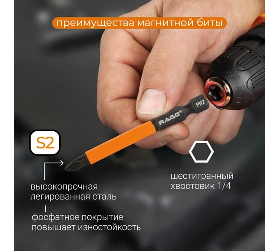 Биты для шуруповерта RAGE By VIRA магнитные S2 PH3 x 50 мм 2 шт 554156