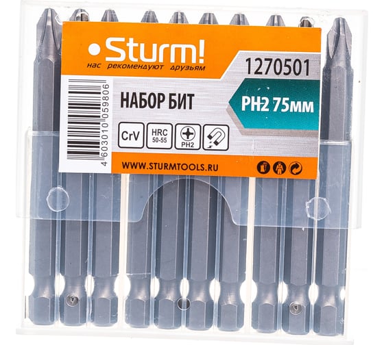 Биты (10 шт; PH2; 75 мм) Sturm 1270501