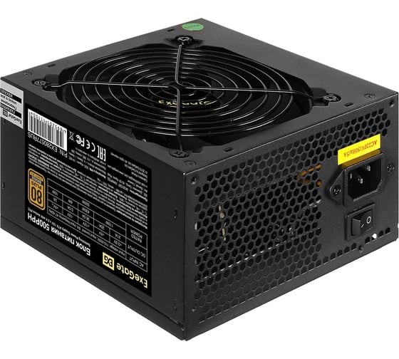 Блок питания ExeGate 500W 500NPXE ATX, PPFC, PC, 12cm fan, 24pin, 2x4+4pin, 2xPCI-E, 5xSATA, 3xIDE, black, кабель 220V в комплекте 284697