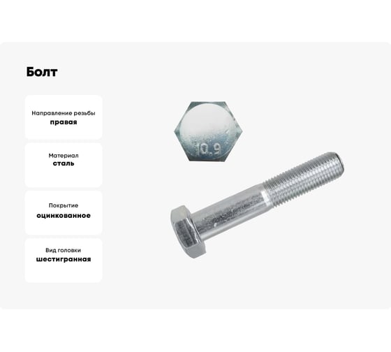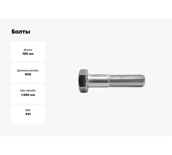 Болт ОПМ DIN 960, М14x1,5x100 мм, 10.9, zn, 50 шт. УТ000089699