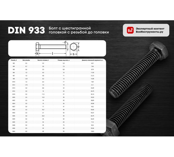 Болт Море-Метизов DIN 933 А2 M10x130 мм, 50 шт BOLT933A2M1013050M