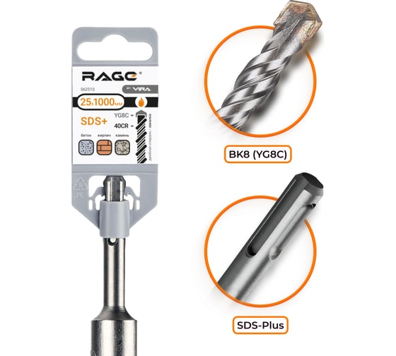 Бур по бетону (25х600 мм; SDS-plus) RAGE by VIRA 562560