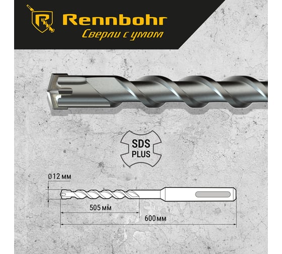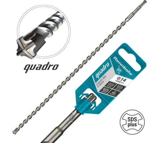 Бур Quadro (14x600 мм; SDS-plus) RENNBOHR 511460