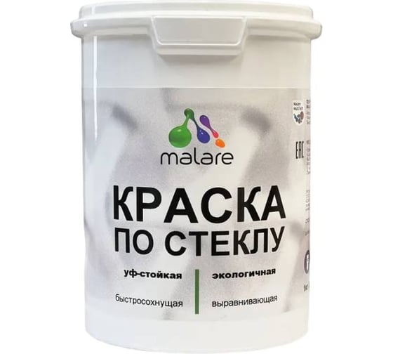 Краска по стеклу и керамике MALARE для декора и творчества, акриловая без запаха, полуглянцевая, черный, 10 кг 4610362811051