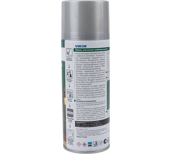Универсальная эмаль VIXEN металлик графит, аэрозоль, 520 мл VX19400