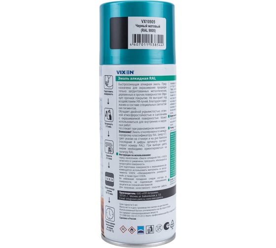 Алкидная эмаль Vixen графитовый серый, ral 7024, аэрозоль VX17024