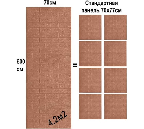 Мягкая самоклеящаяся 3D панель LAKO МЕГА комплект 10 шт., Кирпич Розовый, 70x77 см LKD-01-04-04-MEGA10