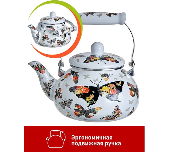 Эмалированный чайник Agness Маки 3 л для индукционных плит 950-473
