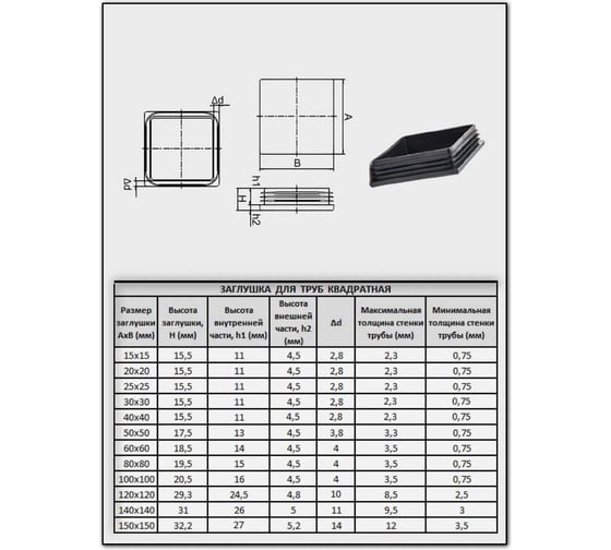 Заглушка для труб 23 Болта круглая d 18 мм черная, 50 шт. 26-0020ф50
