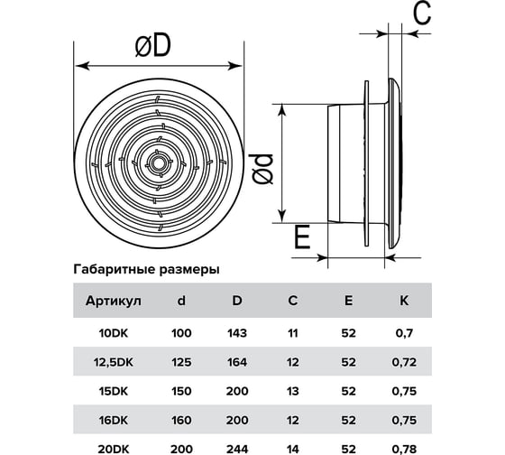 Диффузор вытяжной 160 мм DVS ВЕНТСТОР 2000000010748