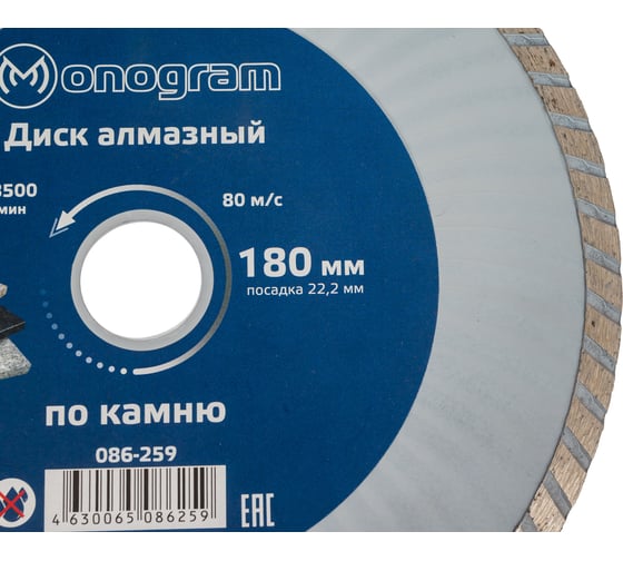 Диск алмазный турбосегментный Special (180х22 мм) MONOGRAM 086-297
