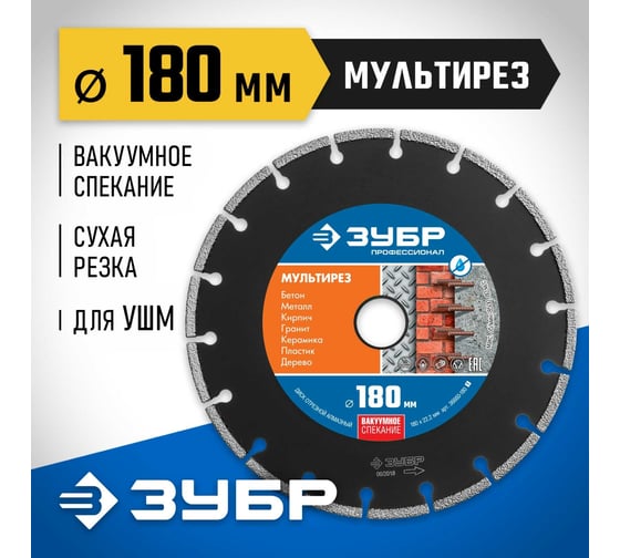 Алмазный отрезной универсальный диск ЗУБР Профессионал Мультирез 180 мм 36660-180_z01