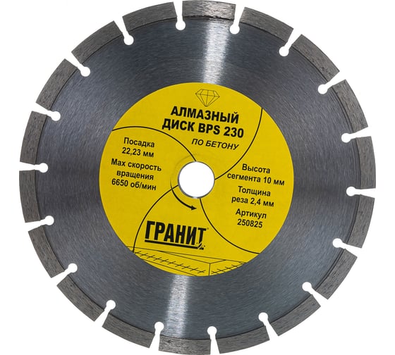 Алмазный диск 230x22.23x3.2x10 мм, железобетон, армированный бетон БСВ 650-118140