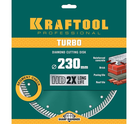 Алмазный отрезной диск ЗУБР Профессионал Турборез 230 мм 36652-230_z02