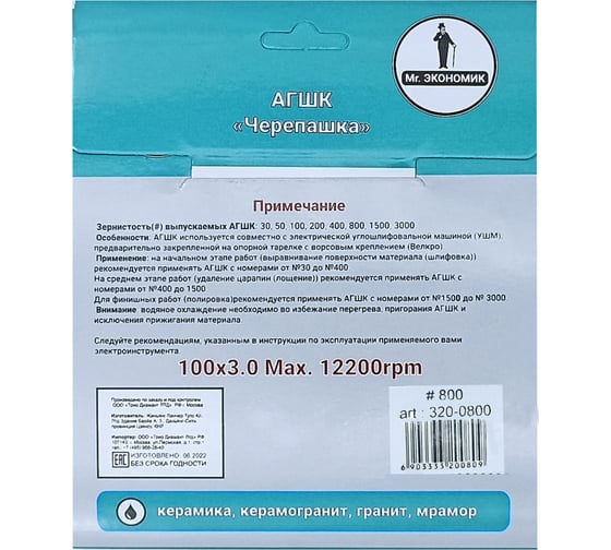 Диски и круги для болгарки (УШМ) Тип диска шлифовальный По камню есть