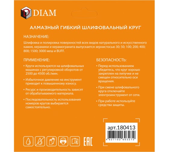 Алмазный гибкий шлифовальный круг STONE-WET+DRY 100 мм, №1500 D.BOR D-S-WD-100-1500