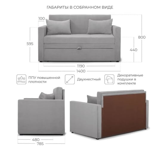 Диван аккордеон Шарм Гранд Д 160 экокожа черная и серый шенилл 33070449