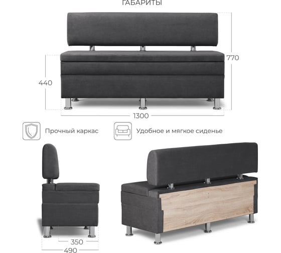 Диван TetChair Charli LUX экокожа, Sharp Графит 25215