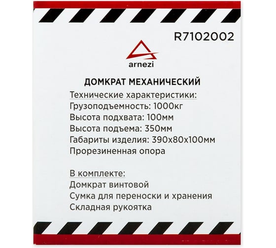 Механический винтовой ромбовидный домкрат ARNEZI 1 т, 88-380 мм R7102002