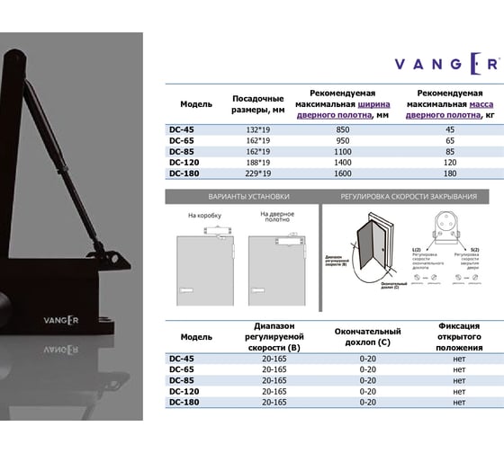 Доводчик дверной Vanger DC-180-SL 26417 00026417