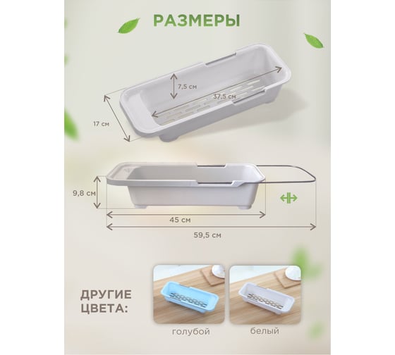 Дуршлаг раздвижной IHome 45x17,5x9 см, серый 2386-3