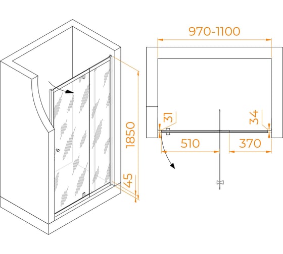 Душевая дверь RGW 110*195 LE-004 Хром/Прозрачное/6 мм 351200411-11