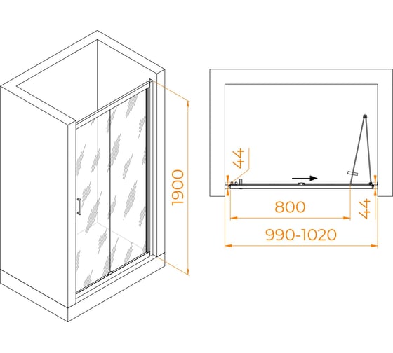 Душевая дверь RGW 90*200 HO-014 Хром/Прозрачное/8 мм, EasyClean 350601409-11