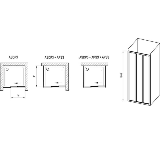 Трехэлементная раздвижная душевая дверь ASDP3-110 S профиль сатин, матовый полистирол 00VD0U0211