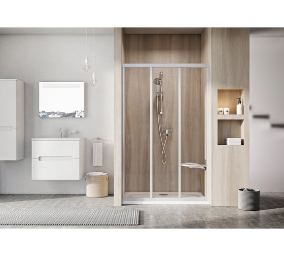 Душевая дверь трехэлементная раздвижная Ravak Supernova ASDP3-100 белый профиль, прозрачное стекло 00VA0102Z1 00000017652