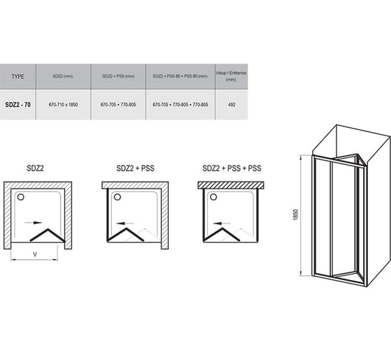 Двухэлементная складная душевая дверь Ravak SDZ2-70 белый профиль, матовый полистирол 01V1010011