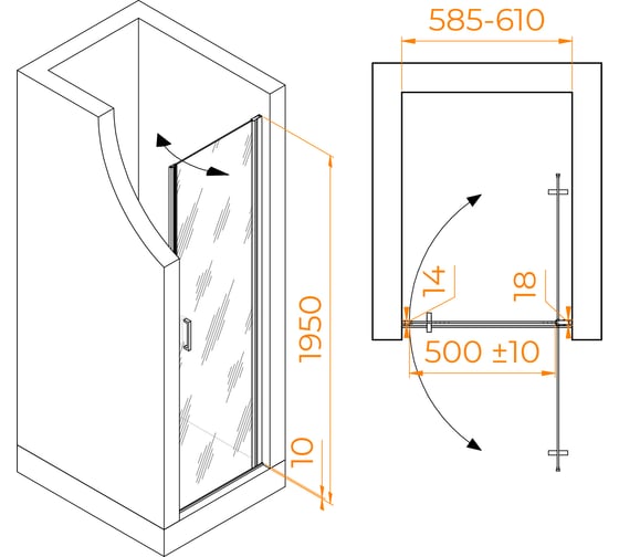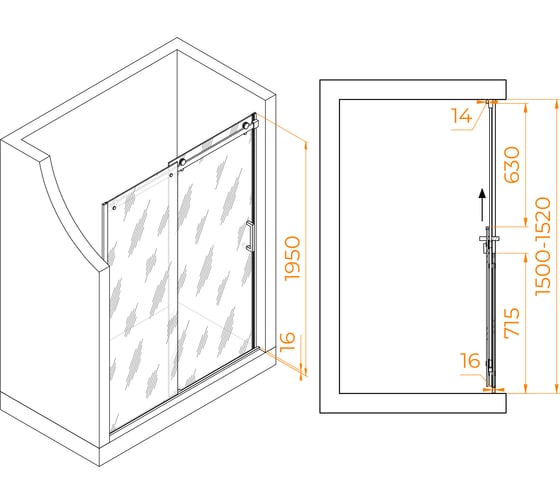Душевая дверь RGW 150x195 TO-14B чёрный, прозрачное, 8 мм 02071415-14