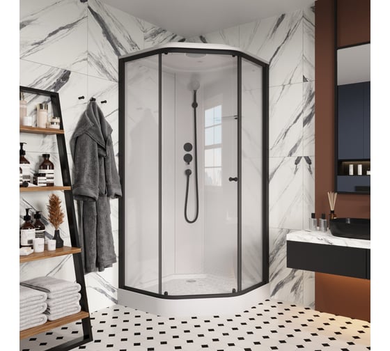 Душевая кабина RGW 100х100х200 AN-208-B Полукруг/Чёрный/Прозрачное/5 мм (3 уп.) 381320800-14