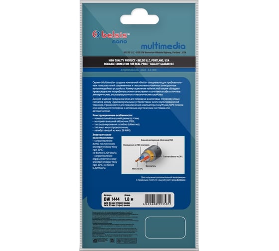 Кабель Belsis Jack 3,5 mm, m - m, вилка - вилка, 1.0 м., белый, стерео, коробка с EAN BS3004W