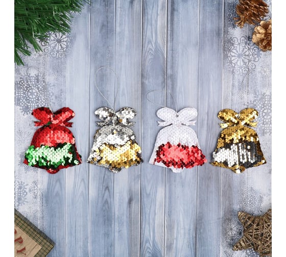 Бант на елку Серпантин "Блеск" 12*14 см, набор 4 шт, Красный 185-0609