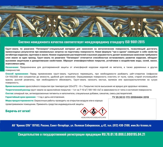 Эмаль КРОНОС СПб ПФ-115 Кронос черный (RAL 9005), банка - 2 кг 4605578002546