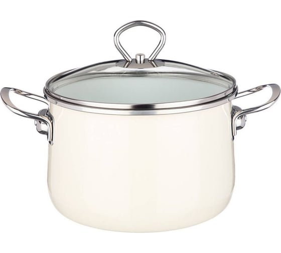 Кастрюля RASHEL 2.6 л, эмалированная, со стеклянной крышкой, ручка хром, кремовая R9020
