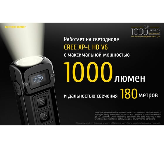 Наключный фонарь Nitecore tup black cree xp-l hd v6 18254