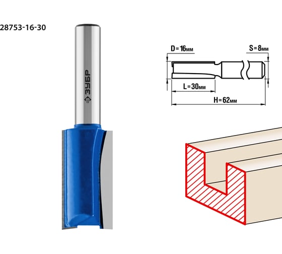 Пазовая прямая фреза с нижними подрезателями ЗУБР Профессионал 19x51 мм 28755-19-51
